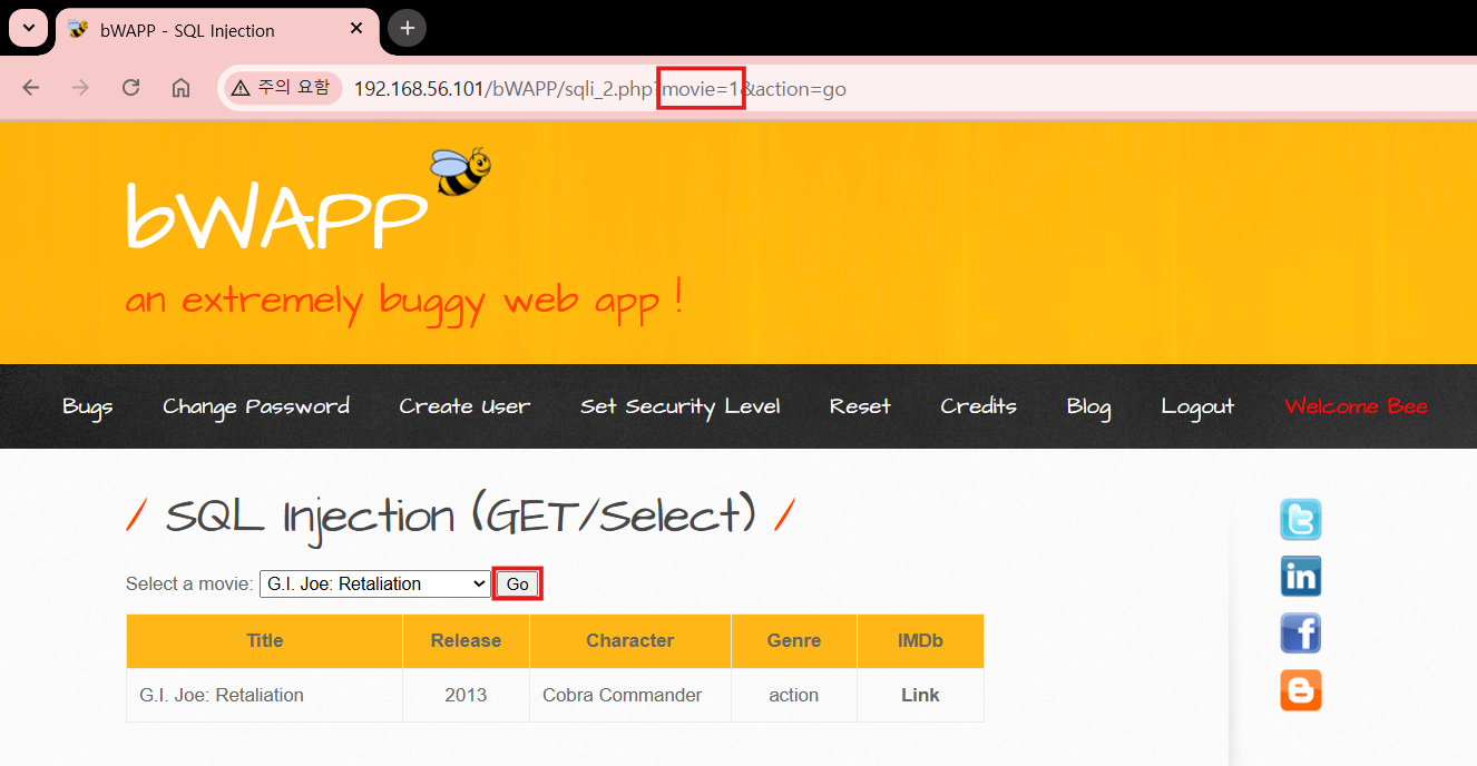 | [bWAPP] SQL Injection(POST/Select) 공격 실습 - SQLMap 활용 (0) | 2025.08.25 |