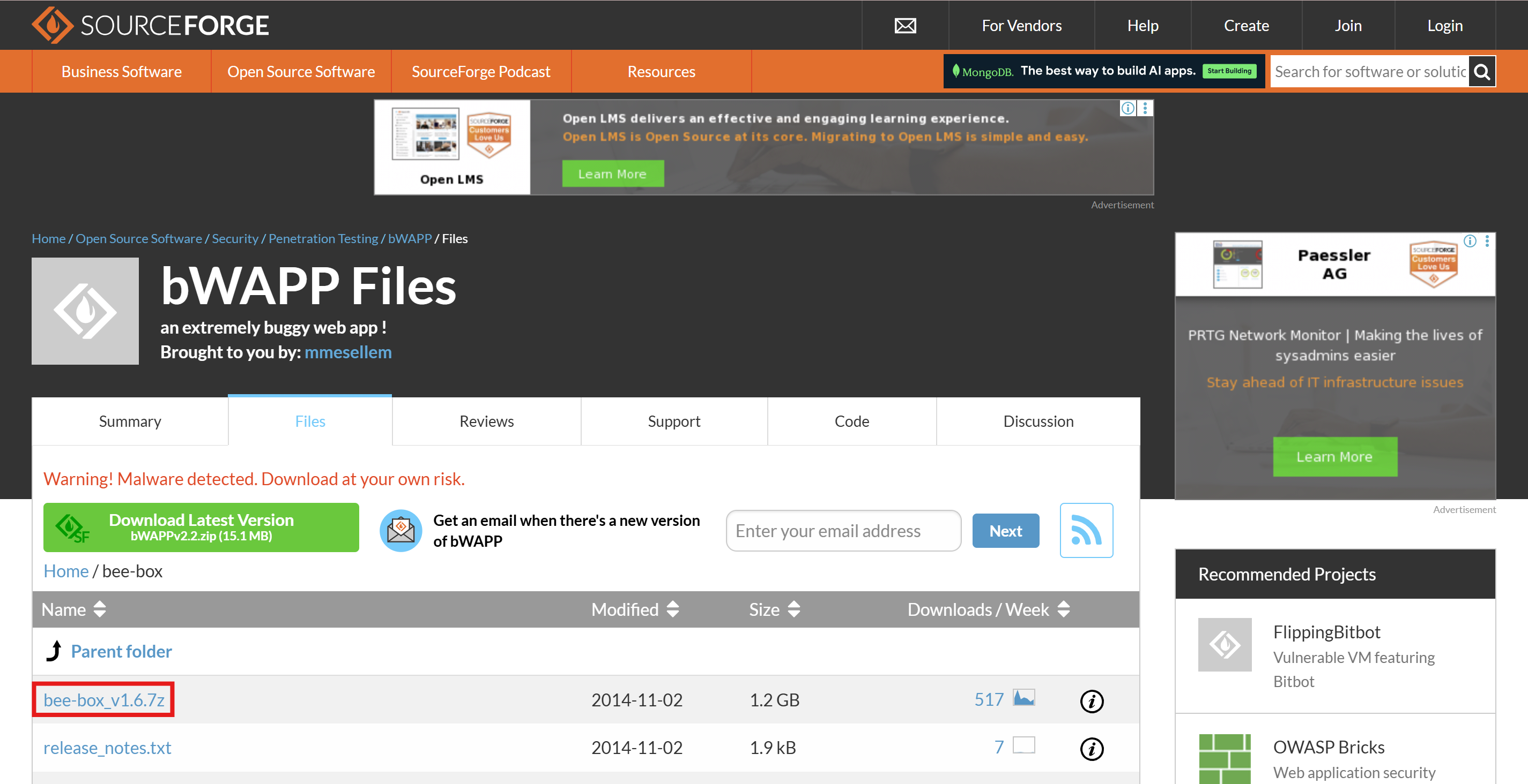 2. bWAPP 환경 설치 (https://sourceforge.net/projects/bwapp/files/bee-box/)