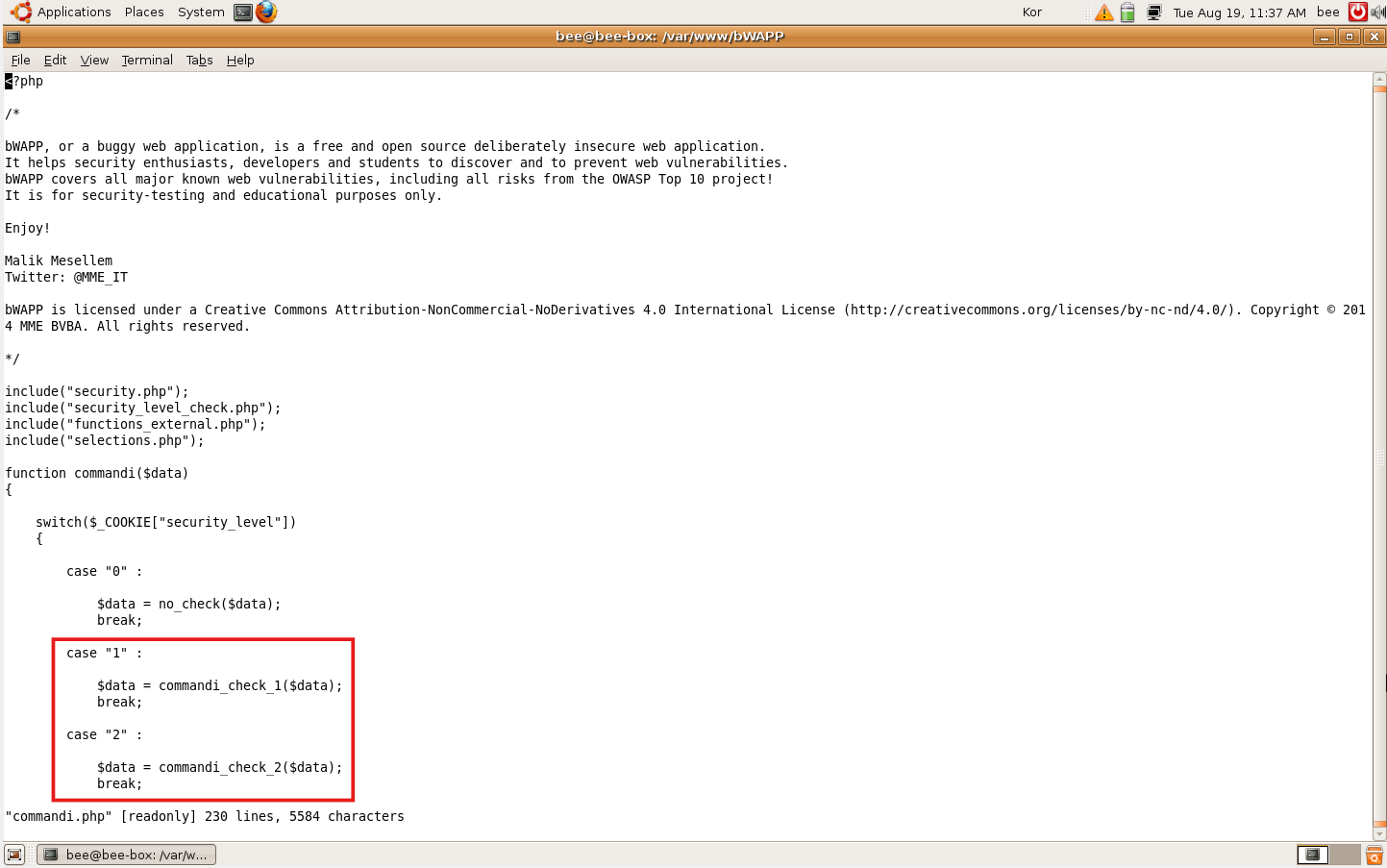 이유를 확인하기 위해 /var/www/bWAPP/commandi.php 페이지의 소스코드를 확인한다.